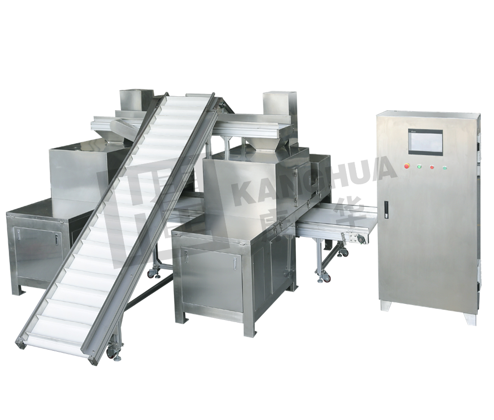 將兩臺(tái)單獨(dú)的刨片機(jī)組合,實(shí)現(xiàn)上料,分流,稱重,切制,出料全自動(dòng)的生產(chǎn)過(guò)程。進(jìn)料端設(shè)有輸送式儲(chǔ)料箱,可以儲(chǔ)存較大量原物料,減少人工加料次數(shù)。運(yùn)行全程由PLC微電腦控制操作,具有連續(xù)作業(yè)、能耗低、產(chǎn)量高等優(yōu)點(diǎn)。符合GMP要求。