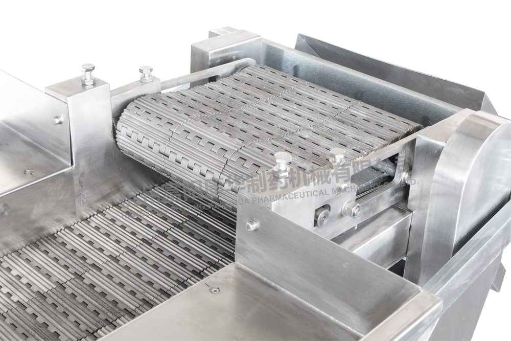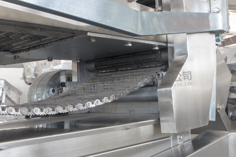 采用不銹鋼鏈條連續(xù)輸送物料,操作簡(jiǎn)單,生產(chǎn)效率高;該機(jī)具有運(yùn)轉(zhuǎn)平穩(wěn)、噪音低、維修方便等特點(diǎn),符合GMP要求。
