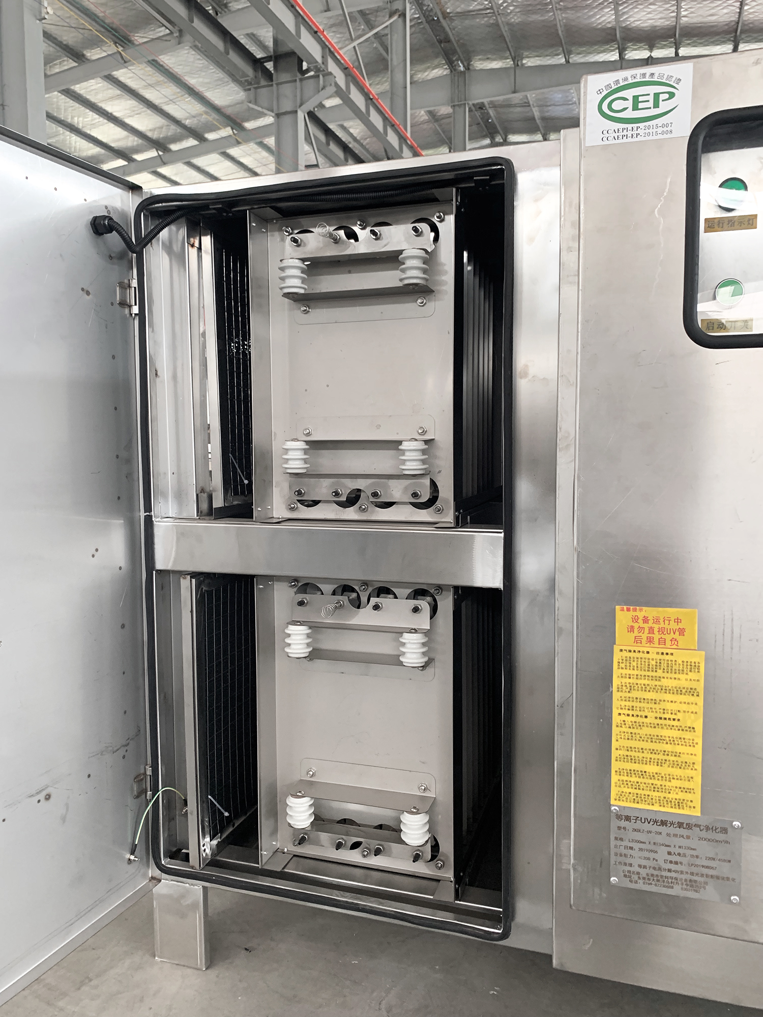 工作原理:在光解區(qū),利用特制的高能高臭氧UV紫外線光束照射異味氣體,經(jīng)多級(jí)凈化后徹底達(dá)到脫臭及殺滅細(xì)菌的目的;在分解區(qū),低溫等離子體降解污染物是利用這些高能電子、自由基等活性粒子和廢氣中的污染物作用,使污染物分子在極短的時(shí)間內(nèi)發(fā)生分解,并發(fā)生后續(xù)的各種反應(yīng)以達(dá)到降解污染物的目的。最終達(dá)到排放標(biāo)準(zhǔn)。